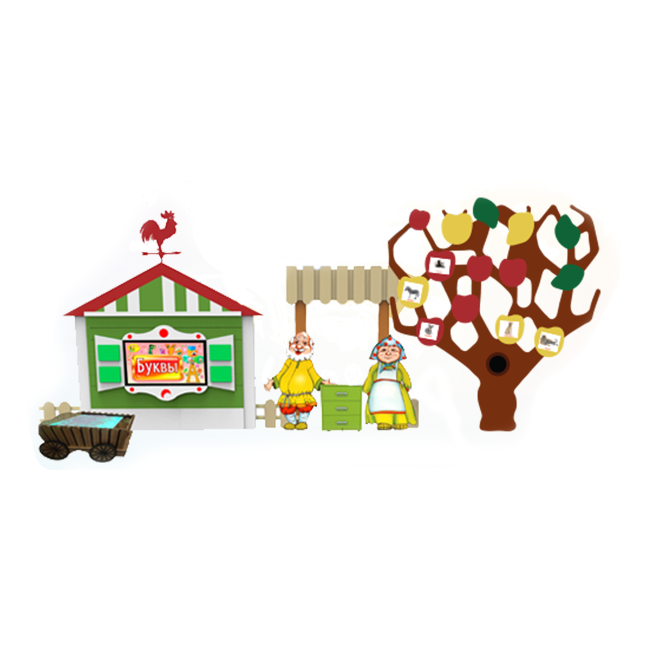 - декоративный пристенный модуль «Дерево» и декоративный настенный элемент «Заборчик с воротами» дополняют стилизованное оформление комплекса
