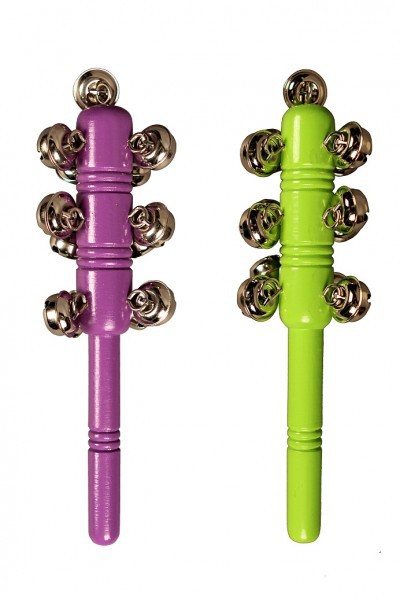 Данная модель сделана из   дерева, цвета в ассортименте. На корпусе с удобной ручкой закреплены 13 бубенчиков. Размер инструмента  22  см.