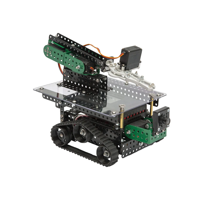 Из деталей набора собирается гусеничная платформа, которая обеспечивает лучшее сцепление с различными поверхностями, делая робота более проходимым.
