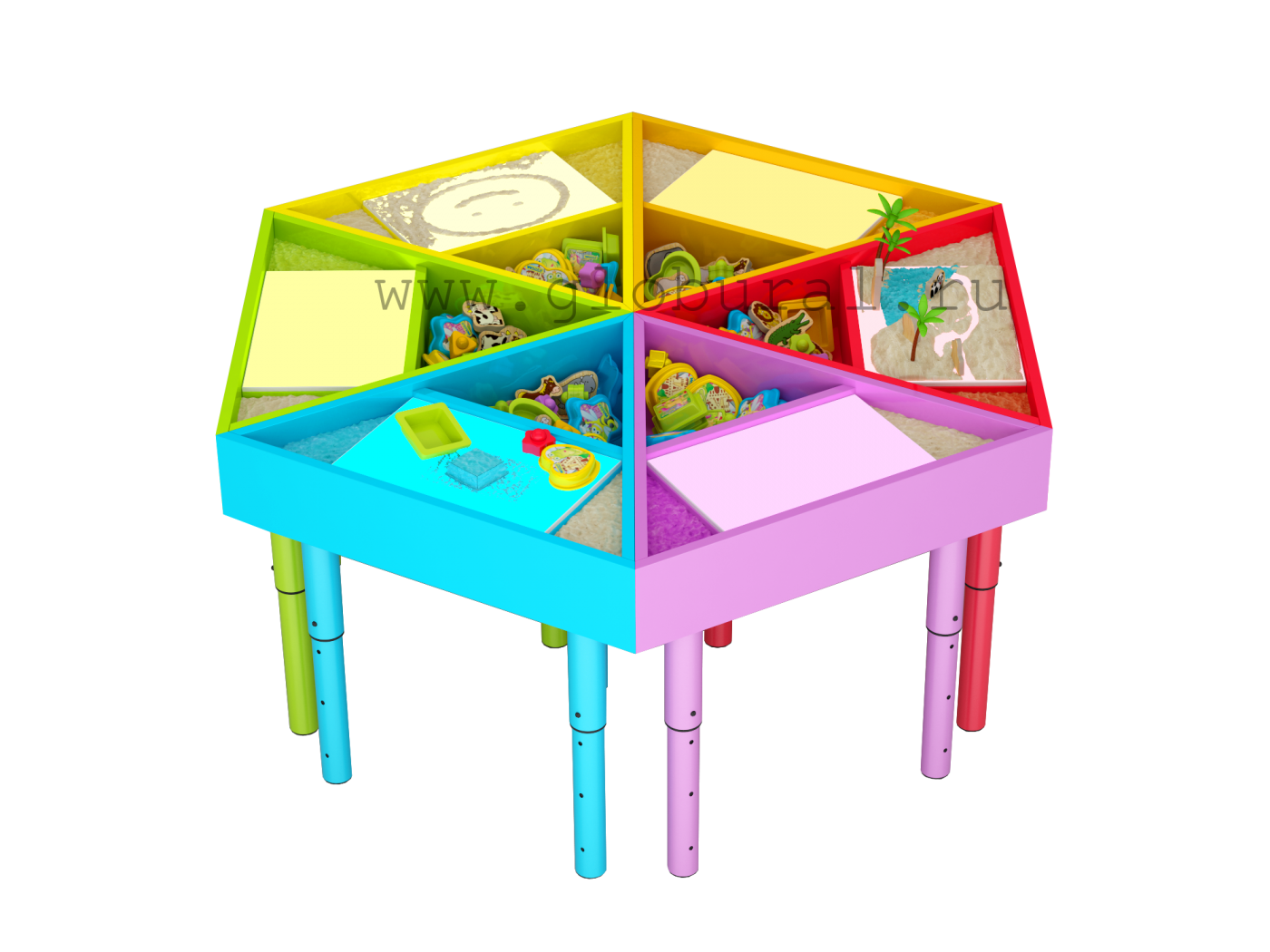 - Столы имеют световой планшет для рисования песком, а так же, три отсека:
