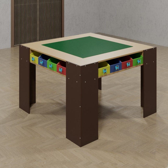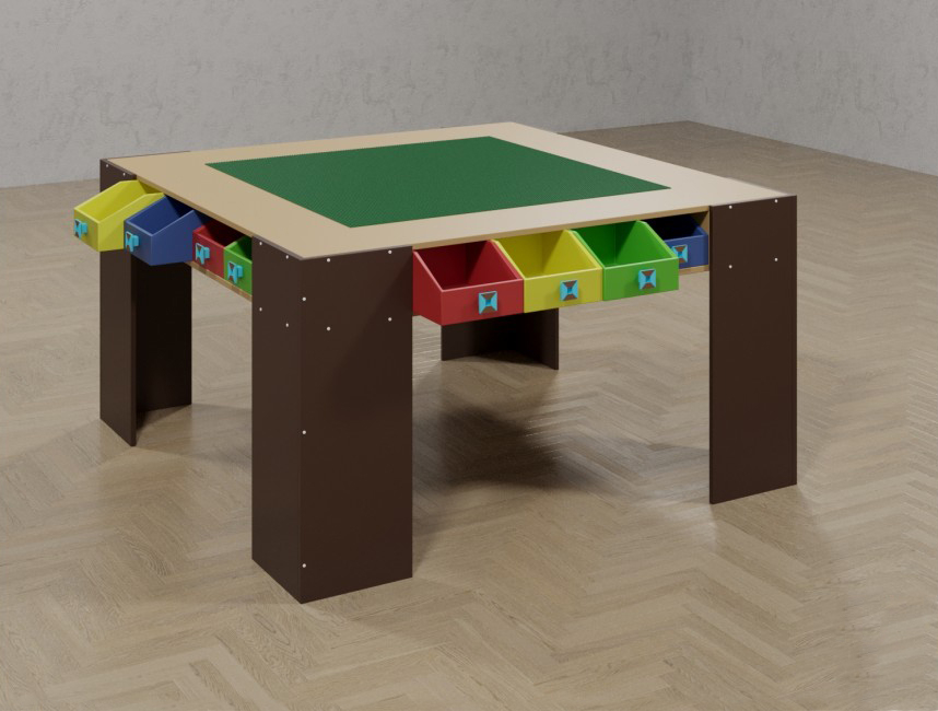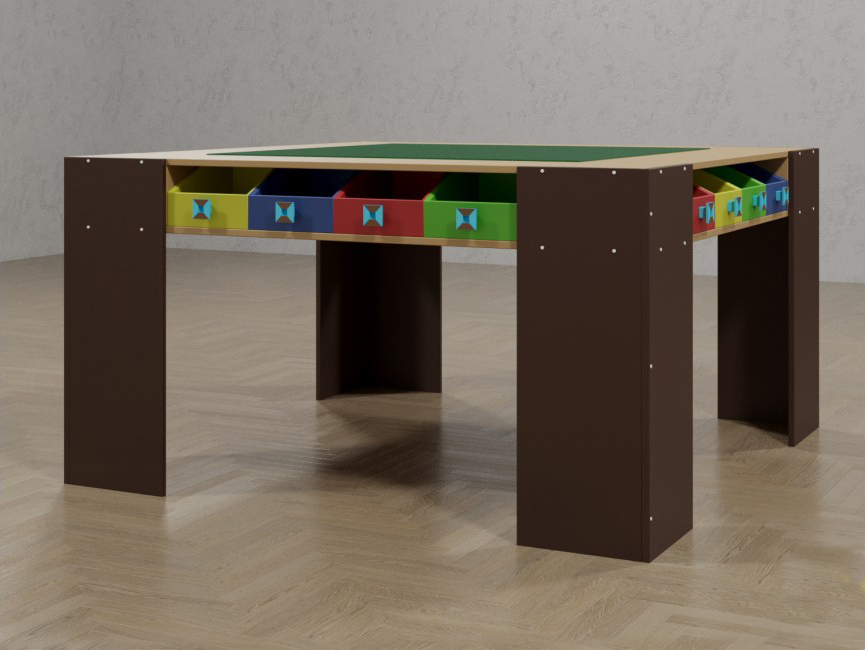 Интересный и сложный процесс конструирования роботов требует наличие не только необходимых для роботов деталей, но и специального оборудования, которое поможет раскрыть ребятам весь свой творческие потенциал. Таковым может являться представленный стол, который разработан специально для таких целей. Стол содержит просторную и большую столешницу, которая поможет малышам свободно расположить все необходимые элементы и чувствовать себя свободно в каждом движении. Восемь выдвижных разноцветных ящиков могут быть использованы для хранения детьми деталей, которые всегда нужны под рукой. Четыре высокие и крепкие ножки обеспечивают надежность стола и безопасность во время занятий. Каждый элемент стола продуман до мелочей для того, чтобы юные инженеры и робототехники чувствовали себя комфортно и свободно. Стол необходим для проведения занятий по роботостроению. Может быть использован детьми старше 3-х лет.