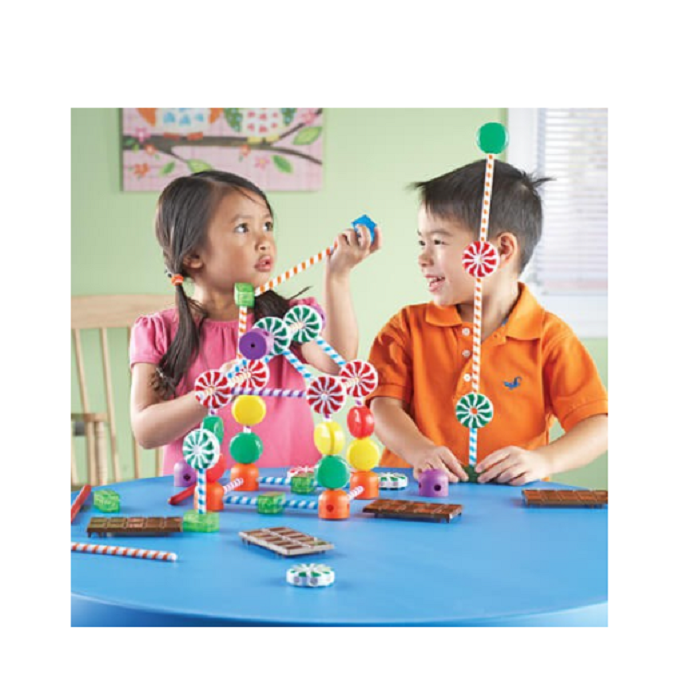 С помощью строительных блоков в виде конфет играть и познавать основы конструирования намного интереснее! Огромные мармеладки, леденцы, большие соединительные блоки и гигантские конфеты – с их помощью во время игры у ребенка развиваются навыки мелкой моторики, последовательное мышление, умение следовать инструкциям, пространственное воображение. Помогите ребенку построить Коляску-Вкусняшку, Сладкую карусель , Лакомые качели и Сахарную избушку.