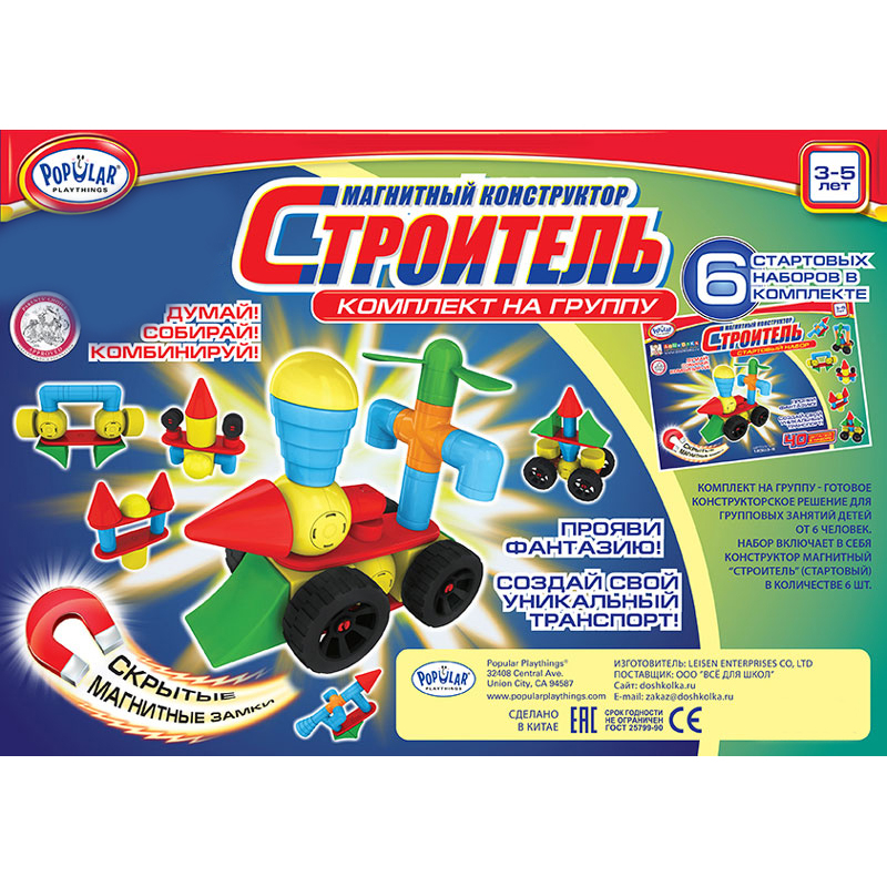 Магнитный конструктор Строитель был разработан с учетом интересов ребенка.