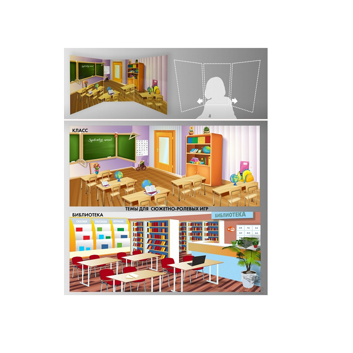 Главная Каталог Подготовительная группа и детский сад Кукольный театр Ширмы и реквизит Стенд для сюжетно-ролевых игр 2-х сторонний (класс, библиотека)