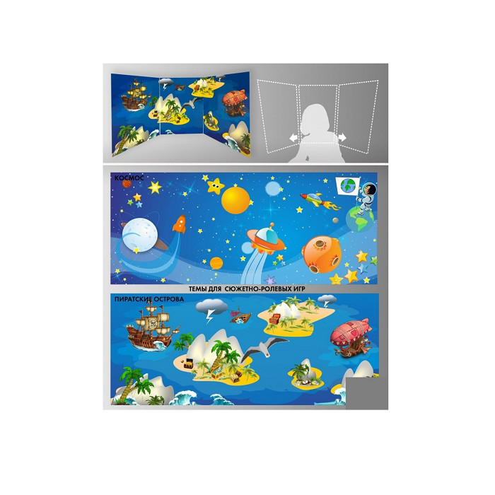 Главная Каталог Подготовительная группа и детский сад Кукольный театр Ширмы и реквизит Стенд для сюжетно-ролевых игр 2-х сторонний (пиратские острова, космос)
