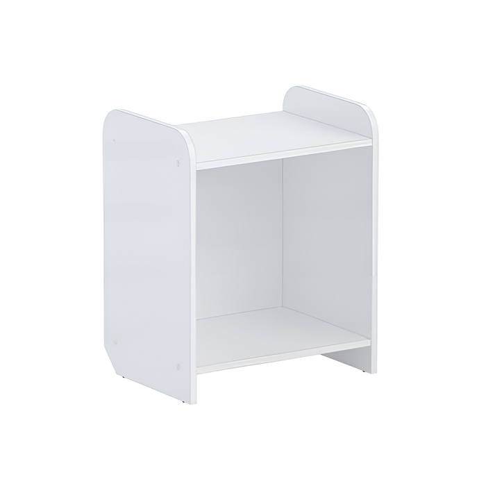 Конструкция стеллажа не имеет острых граней и углов. Тумба стеллажа установлена на пластиковые подпятники.