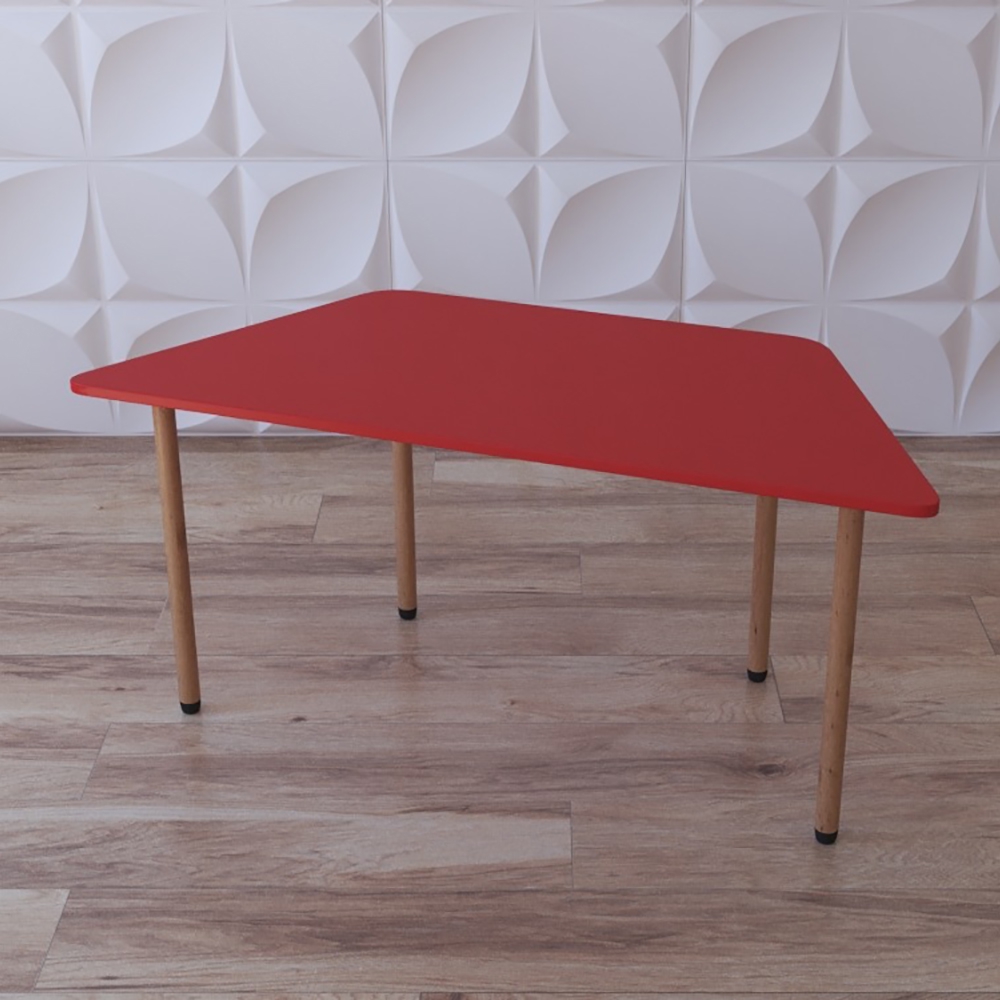 Детский стол “Трапеция классика” нужен для групп в ДОУ, коррекционных и развивающих центрах. Стол легкий, а ещё имеет очень простую конструкцию - состоит из 4-х ножек и столешницы формы траеции, окрашенной в ярко-красный цвет. За ним можно разместить 1-2 ребёнка. Группа из таких столов обеспечит учебными местами учреждение образования и не только – они одинаково к месту будут смотреться как в группе детсада, так и в художественном классе, на подготовительных занятиях к школе или дополнительных занятиях для младших школьников.