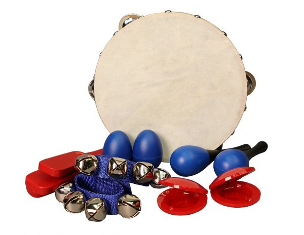 Перкуссионный    набор изготовлен из экологически чистых материалов и состоит из 6-ти  предметов, оформленных в красочном стиле: пары цветных деревянных   шейкеров, круглого тамбурина с натуральной мембраной, пары маракас, кастаньет на ручке, пары кастаньет и пары браслетов с бубенчиками на руку или лодыжку. Музыкальные инструменты  сделаны из дерева и  имеют  яркую расцветку.