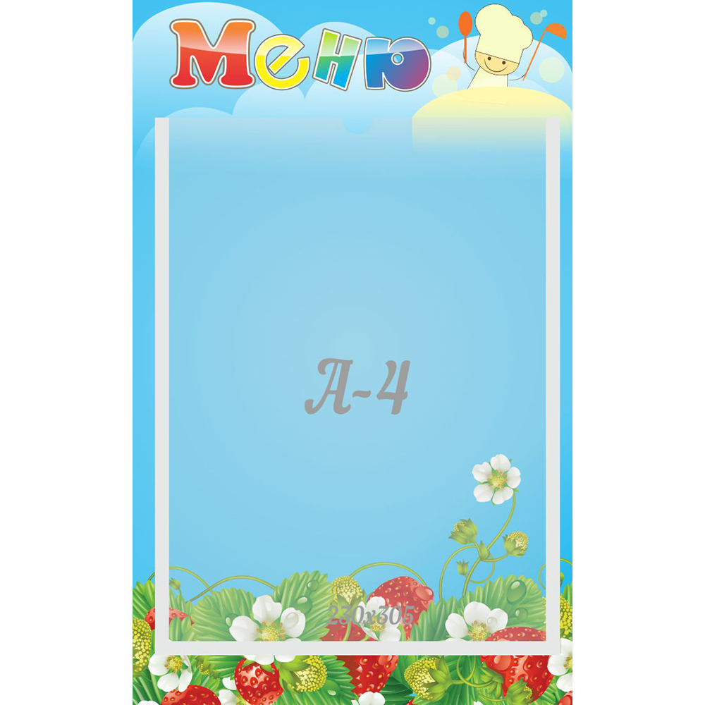 Детям разных возрастных групп предлагают разное меню, но этот стенд можно использовать в любой группе. Он отлично дополнит интерьер групповой комнаты. Кроме того его можно повесить на стене в раздевалке. Родители, приводя ребенка в садик, всегда будут видеть, чем собираются кормить их ребенка.