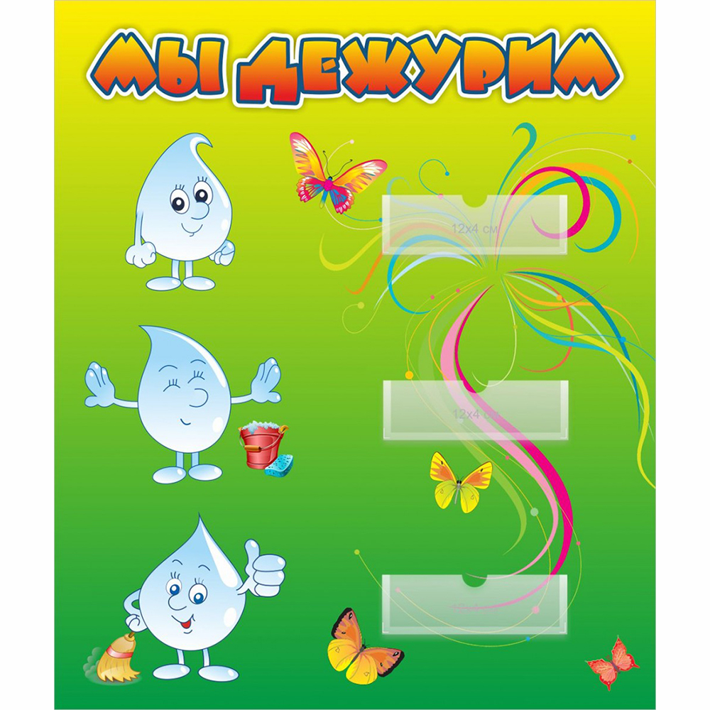 В трех специальных небольших кармашках можно размещать названия групп, фамилии или фото ребят, которые сегодня дежурят. Стенд поможет приучить ребят к чистоте, порядку и соблюдению положенных графиков дежурства.