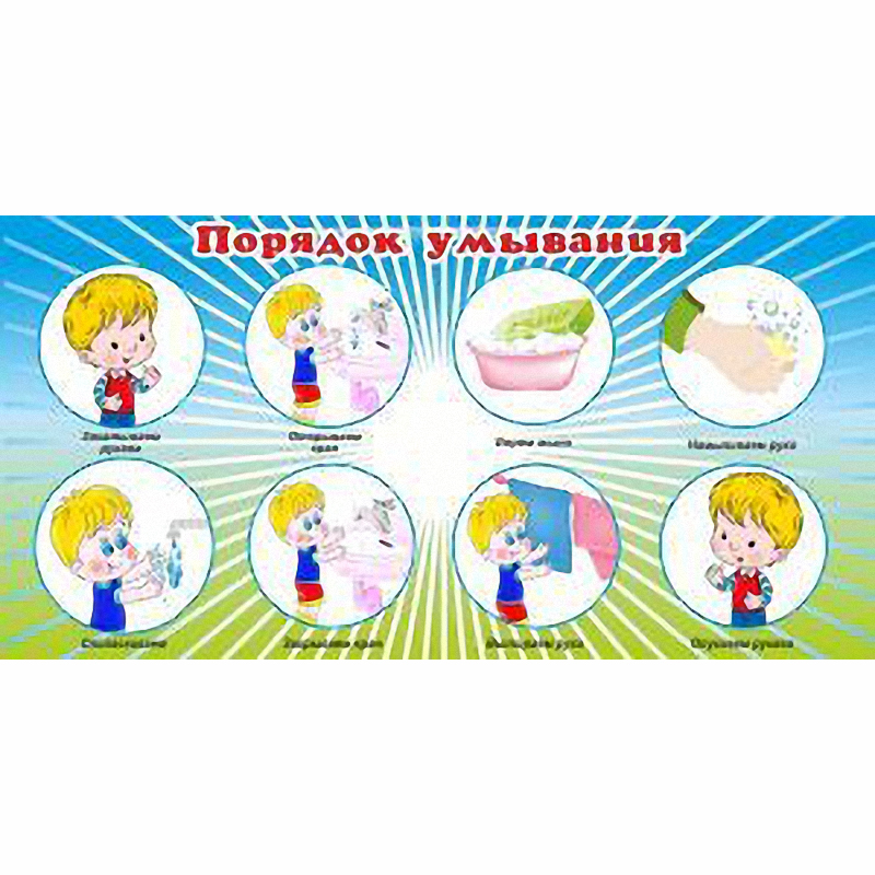 Заботе о здоровье воспитанников уделяется особое внимание работников дошкольных заведений. Поэтому тщательное мытье рук с мылом является обязательным условием, которое препятствует возникновению бактерий и помогает содержать руки в чистоте. Но младшим дошкольникам не всегда удается сразу запомнить порядок действий при умывании. Избежать путаницы поможет наш стенд. На нем с помощью наглядных картинок разрисован весь процесс умывания.