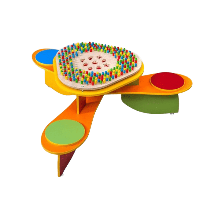 Дидактический комплекс «Карусель» создан для развития детей в условиях групповых занятий в дошкольных учреждениях. Красочный и безопасный корпус удобен для детей из ясельных и младших дошкольных групп. Дидактический стол  оснащен съемной столешницей с комбинированным сортером и мозаикой, а также экологическими цветными палочками для мозаики, сделанными из древесины.