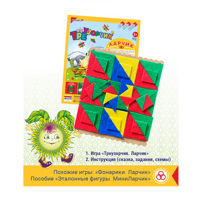 Пособие для игровых и развивающих занятий с детьми как в группе, так и индивидуально. Набор из треугольников 3-х размеров, 4-х цветов позволит ребёнку самостоятельно или с помощью взрослого создавать орнаменты и узоры, конструировать образы и художественные композиции. В процессе деятельности будут формироваться и совершенствоваться учебные и коммуникативные навыки.