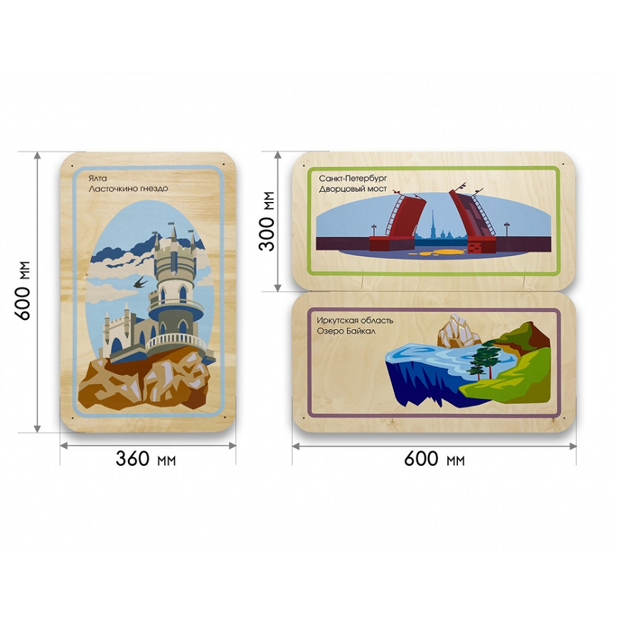 Главная Каталог Подготовительная группа и детский сад Сенсомоторное развитие Сенсорные панели для детей Набор стеновых панелей «Памятные места России - Ялта, Санкт-Петербург, Иркутск»