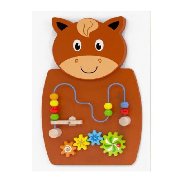 Настенный развивающий модуль "Лошадка-шестерни" состоит из шестерёнок и подвижных бусин. Если нажать деревянную планку на левом конце, можно использовать как катапульту для бусин. Такая игра позволит  вашему  ребенку  в увлекательной  игре  улучшить  способность распознавания цветов и форм. Красочная игра развивает воображение и умение мыслить логически.