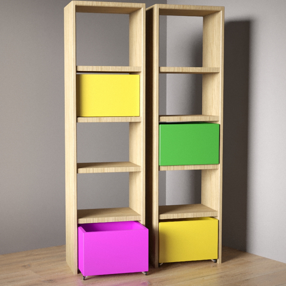 Детский стеллаж выполнен в ярких цветах, что подходит как мальчикам, так и девочкам.