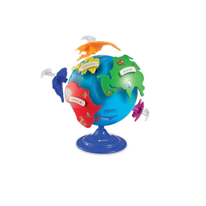 Этот яркий цветной глобус непременно пробудит у вашего малыша интерес к географии! Как можно устоять, когда цветные континенты сами прыгают к тебе в руки? Собирая на глобусе пазл поверхности Земли, география превращается из рутины в захватывающий квест!