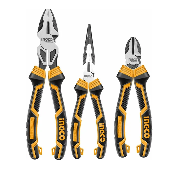 Набор шарнирно-губцевого инструмента усиленные 3 предмета - комплект шарнирно-губцевого инструмента, состоящий из трех предметов: комбинированных плоскогубцев, бокорезов и длинногубцев.