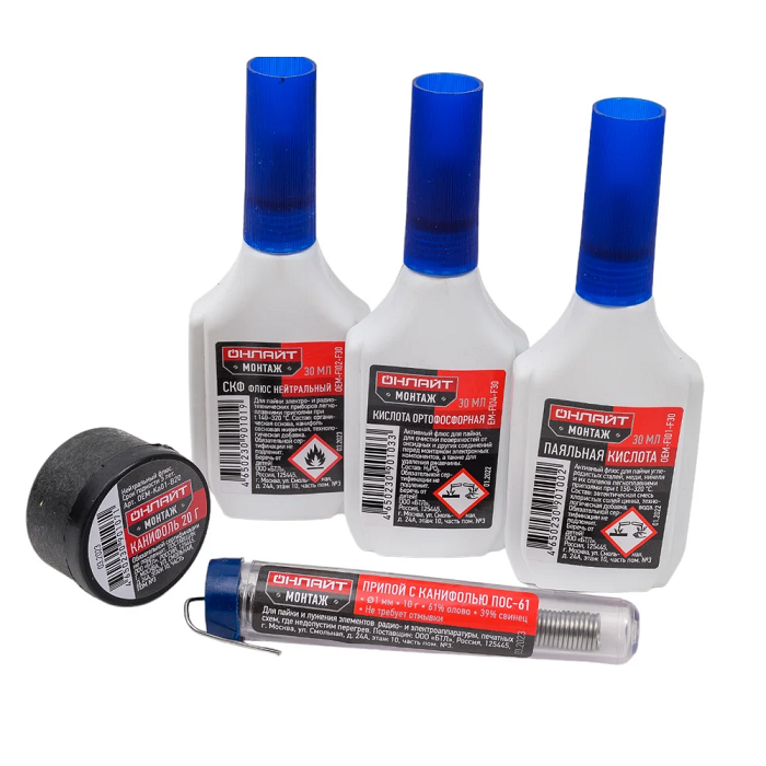 Набор для пайки предназначен для ремонта электротехники и монтажа оборудования. Флюсы разлиты в удобные флаконы со специальной капельницей-дозатором, что позволяет точно и аккуратно наносить раствор на обрабатываемую поверхность.