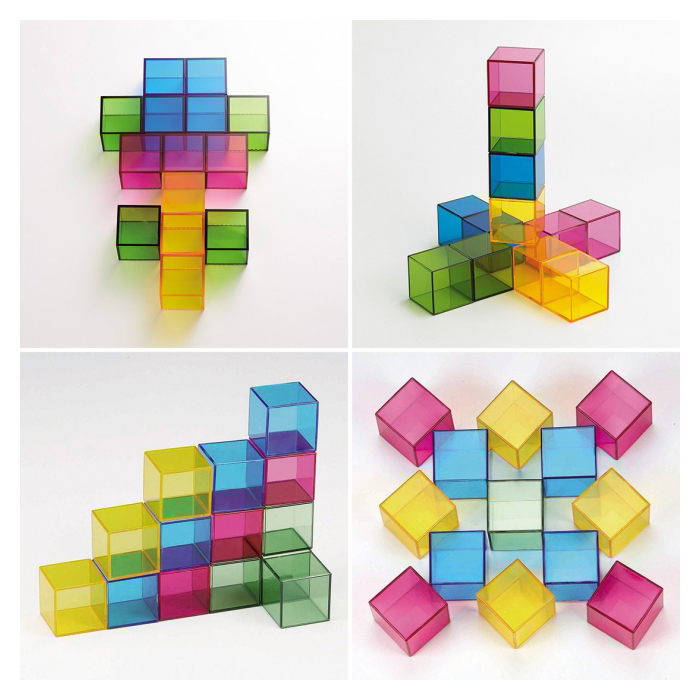 Выполненные детали конструктора в цветах радуги, позволяют детям познакомиться с пространственным искусством, конструируя различные формы и изображения. Это первая игра на распознавание цветов для детей младшего возраста.