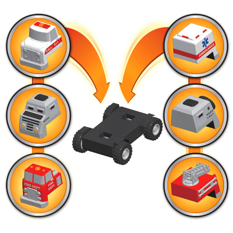 Эти привлекательные крупные модели спасательной техники созданы для самых юных конструкторов. Модели создаются из ярких деталей, которые хорошо держатся друг с другом, легко собираются и разбираются благодаря элементам с применением магнитов. Вы можете создать самые разнообразные автомобили, включая пожарную машину, машину скорой помощи, полицейский броневик.