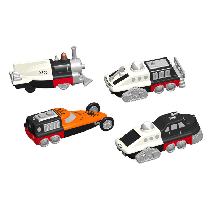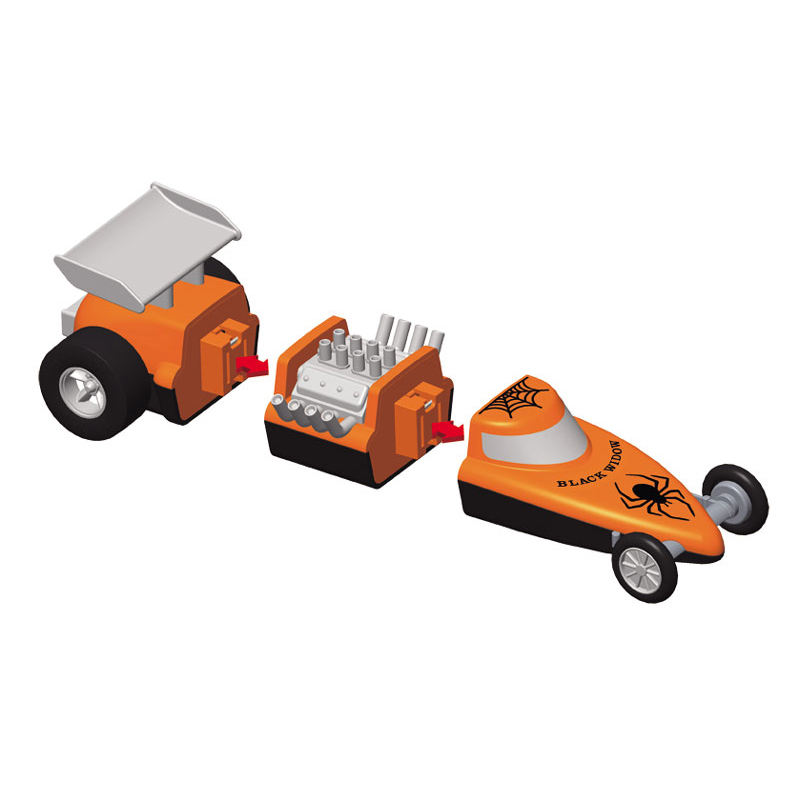 Новые цветовые решения должны понравиться тем, кто хочет видеть в моделях автомобилей большего соответствия реальным машинам, и Вы можете собрать модели гоночных автомобилей - хот-род, гоночный пикап, драгстер. А можете создать модель собственной конструкции фантастического транспортного средства, воспользовавшись тем, что детали конструкторов Транспорт "Смешай и собери" совместимы.Вы испытаете радостное чувство достижения успеха.